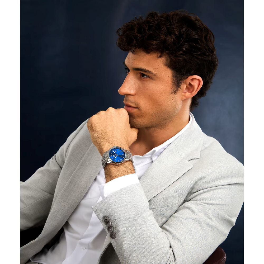 Cinturino in acciaio con chiusura diver di sicurezza, movimento al quarzo e vetro minerale. Resistente all’acqua fino a 5 ATM, ideale per l’uso quotidiano con stile ed affidabilità.